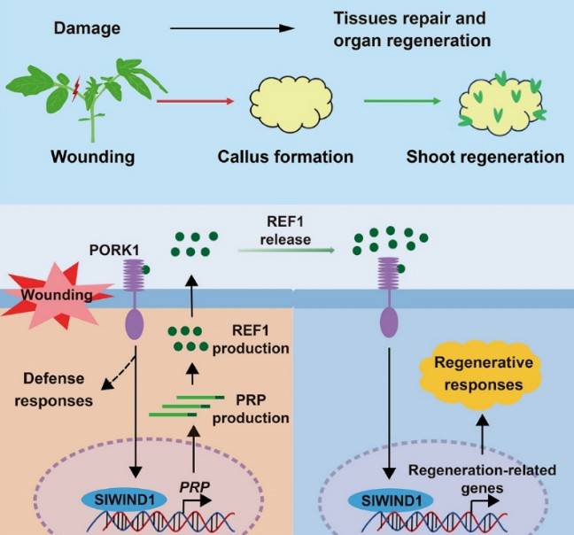 北京时间2024年5月22日23时,山东农业大学/中国科学院遗传与发育生物学研究所李传友团队在Cell杂志上发表了题为“Peptide REF1 is a local wound signal promoting plant regeneration”的研究论文。该研究首次鉴定到诱发植物再生的原初受伤信号分子——再生因子REF1 (REGENERATION FACTOR1),并系统揭示了REF1调
