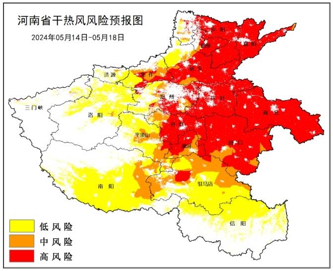 注意!气温飙升,未来十天小麦干热风可能大面积发生!5月9日河南省气象局、河南省农业农村厅联合发布小麦干热风高风险预警。当前小麦已全面进入灌浆期,未来10天全省以晴到多云天气为主,温度偏高、降水偏少,豫北、豫中、豫东大部地区干热风灾害风险较高。预计主要发生时段在5月14—18日。安阳、濮阳、鹤壁、新乡、焦作、郑州、开封、商丘、周口、许昌、漯河11地区为干热风灾害高风险区。(图片来源于河南气象网)同时