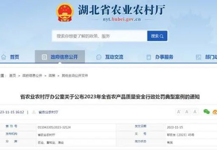 各市、州、县农业农村局,厅机关有关处室、厅直有关单位:2023年,全省农业综合行政执法机构聚焦豇豆农药残留突出问题攻坚治理、农产品禁限用药物使用、私屠滥宰以及不依法开具承诺达标合格证等突出问题,认真履职、主动作为,严厉打击农产品质量安全领域违法违规行为,有效维护了消费者合法权益,切实保障了农产品质量安全。现将12起典型案例公布如下。湖北省农业农村厅办公室2023年11月15日曹某某在农产品生产经营