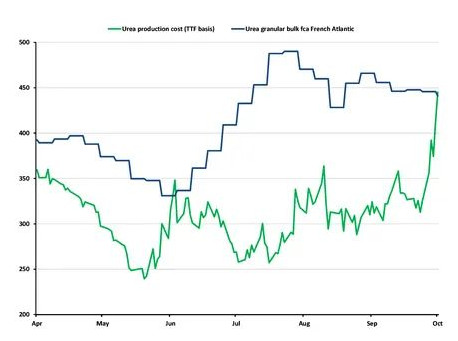 过去一周,欧洲的天然气价格上涨了约40%,再次对该地区氮生产构成挑战。TTF中心的现货价格昨天高达53欧元/兆瓦时,挤压了农业尿素和硝酸盐生产商的利润率。天然气价格上涨的主要原因是天气的大幅波动以及能源安全问题的加剧和保加利亚新税对俄罗斯天然气运输影响的不确定性。Argus估计,即使是最高效的颗粒尿素工厂,在天然气成本为53欧元/兆瓦时的情况下,其出厂生产成本也约为425欧元/吨,而较旧的装置成本