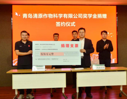 近日,山东农业大学召开了清原奖学金捐赠签约仪式,青岛清原作物科学有限公司向学校捐赠奖学金500万元。学校党委书记徐剑波出席捐赠仪式并讲话。 徐剑波称赞校友感恩母校、回馈社会的精神品质和干事创业、无私奉献的责任担当,希望广大校友一如既往关心关注学校发展,成为一流农业大学建设的参与者、推动者。 会上