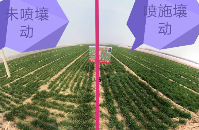 2021年3月7日,白天最高气温只有5℃,春寒料峭,可是在山东冠县桑阿镇贾六庄村王士国大哥的小麦田里,却聚集了好多人,你一言,我一语的在谈论什么,他们不怕冷吗?原来他们是被村里澳佳壤动的代理王经理邀请过来,观看村里王士国的小麦,大家疑惑,王士国家用了什么高科技产品,小麦叶片乌黑油亮,长势喜人,经厂家人员介绍,原来他家的小麦是在播种前拌了壤动FT,这小黑桶真是神奇,用量不大,投入不高,不仅长势好,而