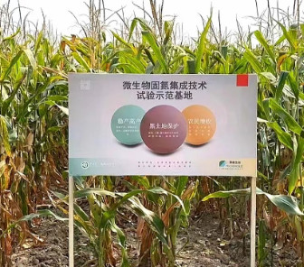 2023年10月5日,吉林省农业农村厅科教处、种子管理总站与吉林大学植物科学学院专家对采用微生物固氮集成新技术的千亩连片玉米和大豆进行了田间实收测产,实收测产地块分别位于吉林省的松原市、公主岭市和内蒙古的通辽市。其中,由吉林省公主岭市十屋镇金鸿种植家庭农场流转地,位于通辽市科尔沁左翼中旗丰库牧场新丰村的3000亩玉米,土壤pH值为8.4,每亩地实收潮粮1314.8公斤(含水29.4%),按14%水