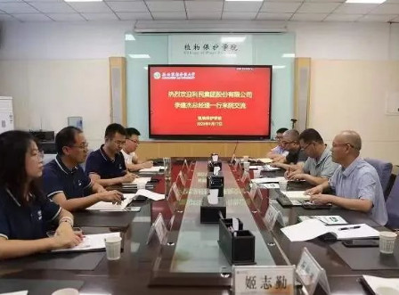 为加强与高校之间的联系,促进产学研相结合,推进校企合作,近日,利民股份子公司威远药业总经理李建杰、植保营销中心副总经理刘新兆、人力资源中心招聘培训经理江艳等一行到西北农林科技大学参观交流。西北农林科技大学植物保护学院胡小平院长、马志卿副院长等领导参加调研交流。座谈会议由副院长马志卿主持。校企联动胡小平介绍了学院的历史沿革与成就,并重点从人才培养、科学研究等方面详细介绍了学院的优势和特色。李建杰介绍