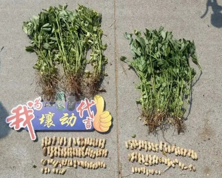 2022年9月12日,澳佳工作人员回访了河南省濮阳市清丰县固城镇王崔村郭大哥家的花生田。在上半年,郭大哥拌种花生时,听说壤动FT拌种花生效果极佳,便怀着试一试的心态拌种了一部分。到了临近收获时,郭大哥和澳佳人员在同一块田里,分别选取了一窝拌种壤动FT和没拌种壤动FT的花生进行比对。最直观的无外乎就是产量的对比。拌种壤动FT的花生成大果39个、小果29个,没拌种壤动FT的花生成大果32个、小果19个
