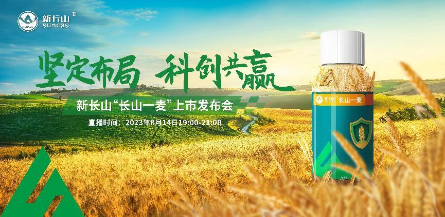 坚定布局·科创共赢助力国家粮食安全,打造小麦作物品牌,新长山大品来袭。2023年8月14日19:00,新长山“长山一麦”产品招商上市会线上线下同步开启,通过线上直播全网发布。在线学习小麦杂草精准防控技术,锁定《农资与市场》传媒“有农有艺”直播间,更有红包好礼等你抢。产品名称:长山一麦®登记成分:4%啶磺草胺·双氟磺草胺登记剂型:可分散油悬浮剂登记证号:PD20230365产品优势:化合物成分登记少