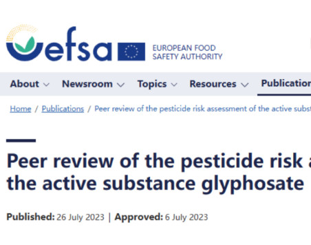 欧洲食品安全局(EFSA)于2023年7月26日正式发布了草甘膦风险评估的同行评议报告。这一报告的发布标志着欧盟草甘膦再评审工作已经按照2022年调整后的工作计划基本完成,即将进入最后阶段。(图片来源:efsa官网)EFSA评估结论与应对方案正如7月6日EFSA前期所披露的情况,该机构在草甘膦对人类健康、动物和环境影响的评估中未发现重大关注方面(critical areas of concern)