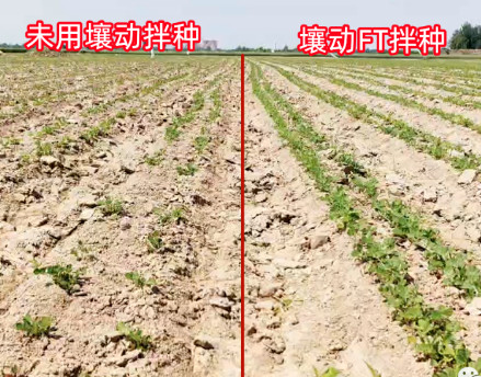 夏播即将开始,种植以玉米和花生为主,对于马上要播种的种子来说,需要经过哪些处理呢?拌种,就是第一关。为什么要拌种?拌种有哪些好处?不拌种可不可以?带着这些问题,用实例给您答案。以上为2023年5月12日河南濮阳南乐县早春花生拌种回访效果。所有的处理条件都相同,唯独使用的进口拌种剂同时,一份加入了壤动FT,另一份没有加。在出苗率上,壤动拌种的花生出苗率达到97%以上,未用壤动出苗率只在75%左右;壤