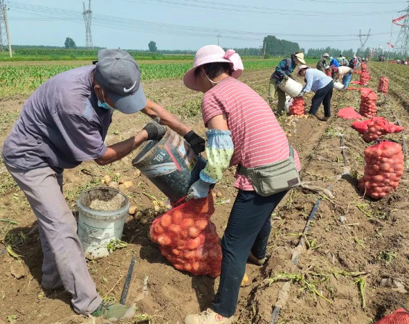河北唐山丰南区,广袤田野美丽如画,足之所至皆为沃土,绘就了“农业强、农村美、农民富”的崭新画卷,现已初步建成京津唐城市圈“菜篮子”优质农产品供应基地,农业产业化水平全面提升。近年来,丰南区凭借当地沙质土壤透水透气性好的特点,大力发展马铃薯种植,新洋丰将新型肥料推广和专业农技服务进行有效结合,带动当地农民科学种植增产增收,助力农业绿色高质量发展,为乡村振兴建设添砖加瓦。带农民认识新型肥料的科技力要实