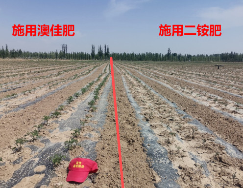 只是因为在地里多看了邻居家番茄地一眼,巴彦淖尔市五原县沙河镇刘大爷便发现他家番茄长势有端倪。同样是一起种的番茄,为何一边长势粗壮、叶片宽厚油绿,另一边则植株瘦小,叶片窄黄?发现这个问题,刘大爷便询问邻居事情原委。邻居解说道:在当地经销商的介绍下,建议我今年种番茄用澳佳的13-18-15腐植酸螯合肥,我也想看看这肥料效果如何,于是就在边上做了一块使用二铵做底肥的对比田。没想到这个肥料确实不错,番茄长