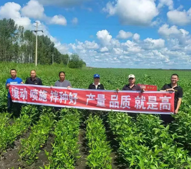 七月中旬,澳佳农化服务团队来到红卫农场史师傅家的大豆地,全部60多垧地都使用澳佳腐植酸螯合肥13-18-15作为底肥,并且近期给大豆苗喷施了壤动FT。 由于近期降雨量偏多,地头出现水泡现象,其他家受灾严重的大豆苗叶片发黄、茎杆矮小,但史师傅家的大豆苗却大不相同,叶片颜色与未被水浸泡的叶片颜色基本一样,高矮差距也不大,这到底是什么原因呢?我们带着疑问就在地里把