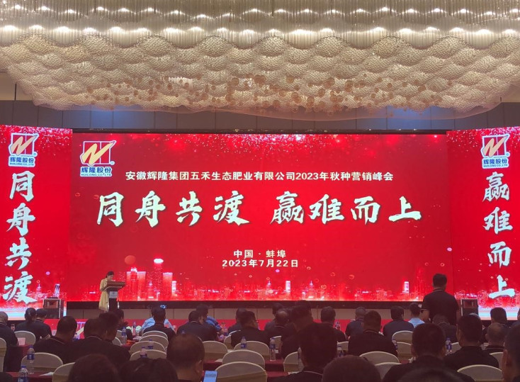 2023年7月22日,安徽辉隆集团五禾生态肥业2023年秋种营销峰会,在历史悠久、底蕴深厚、充满活力的淮河文化发源地蚌埠隆重召开。辉隆股份公司副总经理、连锁集团董事长、总经理赵磊,连锁集团总经理助理、五禾生态肥业总经理闫小六,五禾生态肥业营销公司总经理赵其柳,安徽省农科院作物所所长杜世州、研究员曹承富、作物栽培研究室主任乔玉强,安徽省农科院园艺研究所研究员俞飞飞,安徽朴茂农业科技有限公司总经理李彬