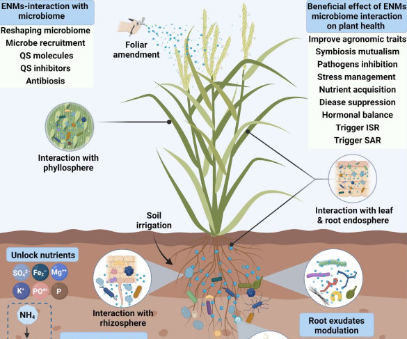 纳米农药作为未来将改变世界的十大化学新兴技术之一,目前正被逐渐应用于水稻白叶枯等病害的防控上,然而,越来越多的研究也发现纳米材料能有效调节植物相关微生物组,众所周知,植物相关微生物组在作物生长、养分获取、对病原体的抗性和非生物胁迫耐受性中都扮演了关键角色。为有效利用纳米制剂来调节植物有益微生物组,充分发挥纳米制剂和有益微生物组的协同作用来促进植物抵抗生物和非生物压力,非常有必要搞清楚纳米制剂和植物