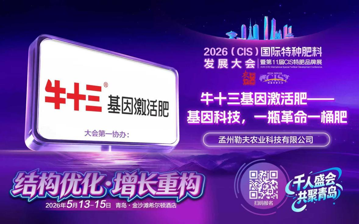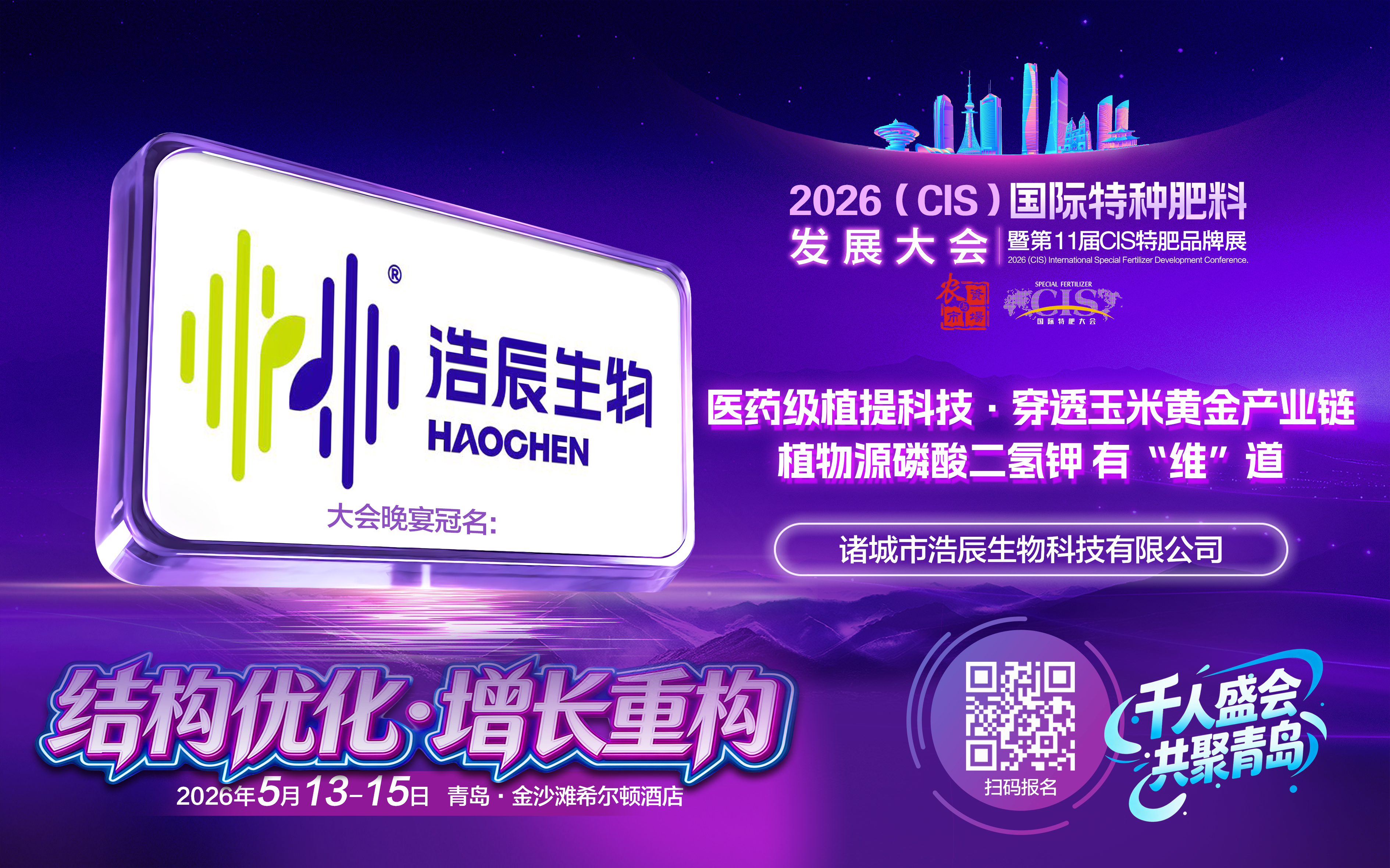 2026年,中国特种肥料行业迈入存量竞争深化、价值驱动升级、结构全面优化的高质量发展新阶段,粗放式增长模式落幕,技术创新、产品专精、服务闭环、绿色高效成为破局关键。5月13-15日,2026CIS国际特种肥料发展大会暨第11届CIS特肥品牌展将在青岛金沙滩希尔顿酒店启幕,以结构优化,增长重构为主题,汇聚全球超1000位行业精英、300+特肥品牌等,共探产业转型之路。作为本次大会晚宴冠名企业,诸城市