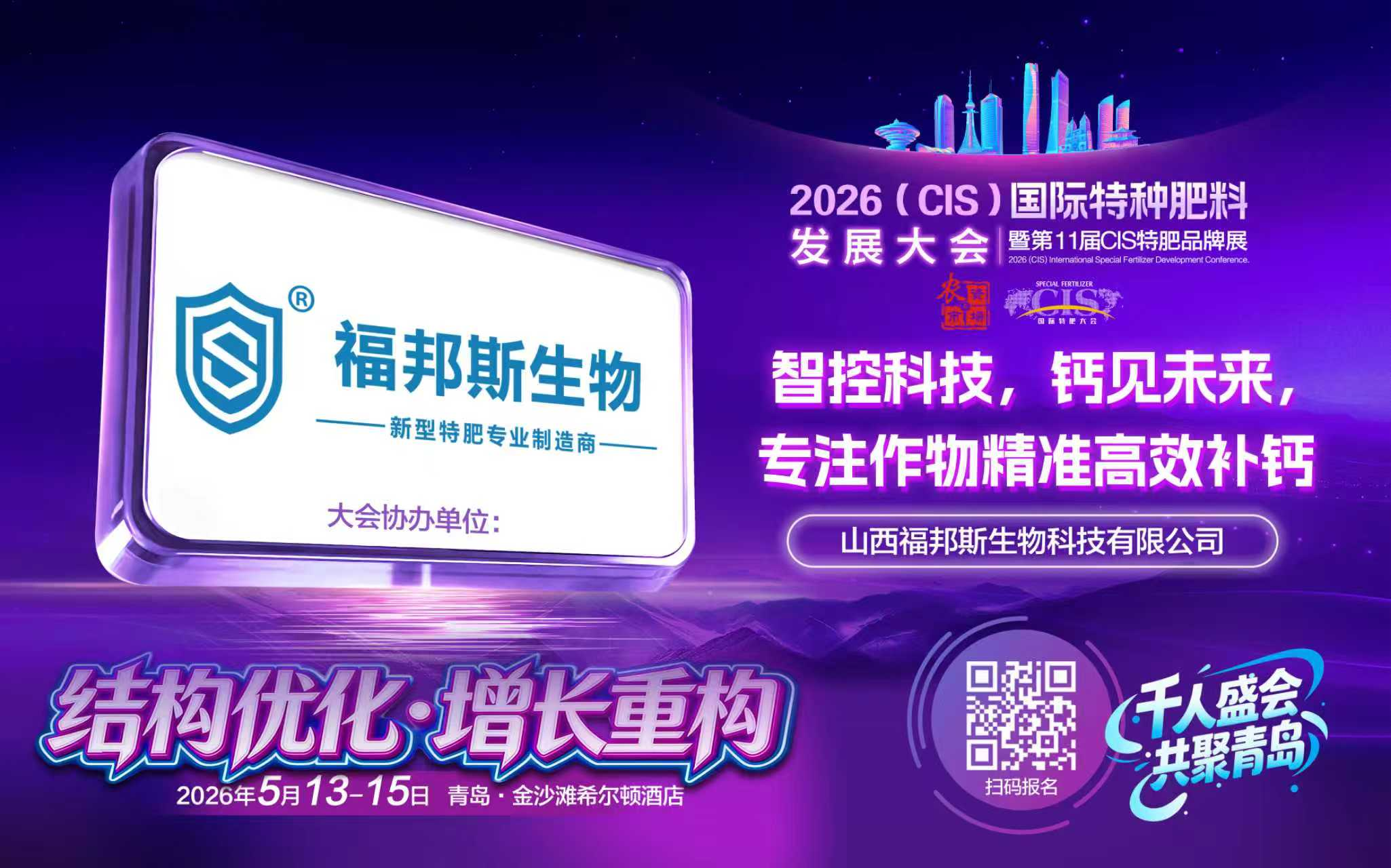 在钙肥同质化、调节剂滥用、服务空心化愈演愈烈的当下,福邦斯生物这家从“钙都”交城走出的企业,正试图用一套硬核逻辑破局:以自主研发的“智控钙”技术解决吸收难题,以全链品控建立信任,以专业农服实现价值落地。在他们看来,行业的未来不属于概念炒作者,而属于那些愿意深耕技术、死磕品控、做实服务的企业。2026年,特肥行业正站在“结构优化,增长重构”的关键节点。5月13—15日,青岛CIS特肥大会,福邦斯生物