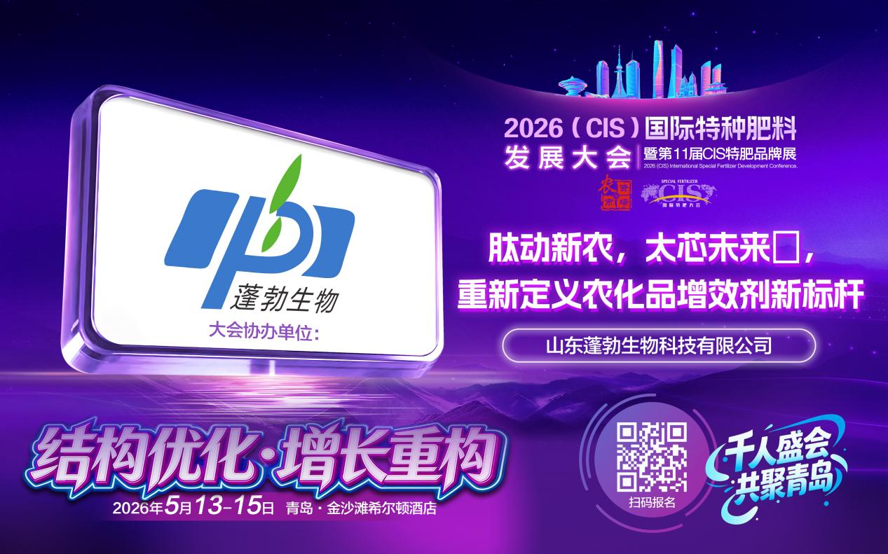 2026年5月13-15日,青岛,CIS国际特种肥料发展大会即将拉开帷幕。作为国内肥料增效剂头部企业、世界生物源创制化合物领先企业,山东蓬勃生物科技有限公司将携核心产品亮相,并分享其对特肥行业“结构优化、增长重构”的深度思考。行业迭代升级:特肥告别概念内卷,迈入精准增效新时代当下特肥发展的核心痛点:同质化严重:大量产品停留在“概念添加”,缺乏明确的有效成分和可检测标准,农户难以辨别真伪。效果信任危