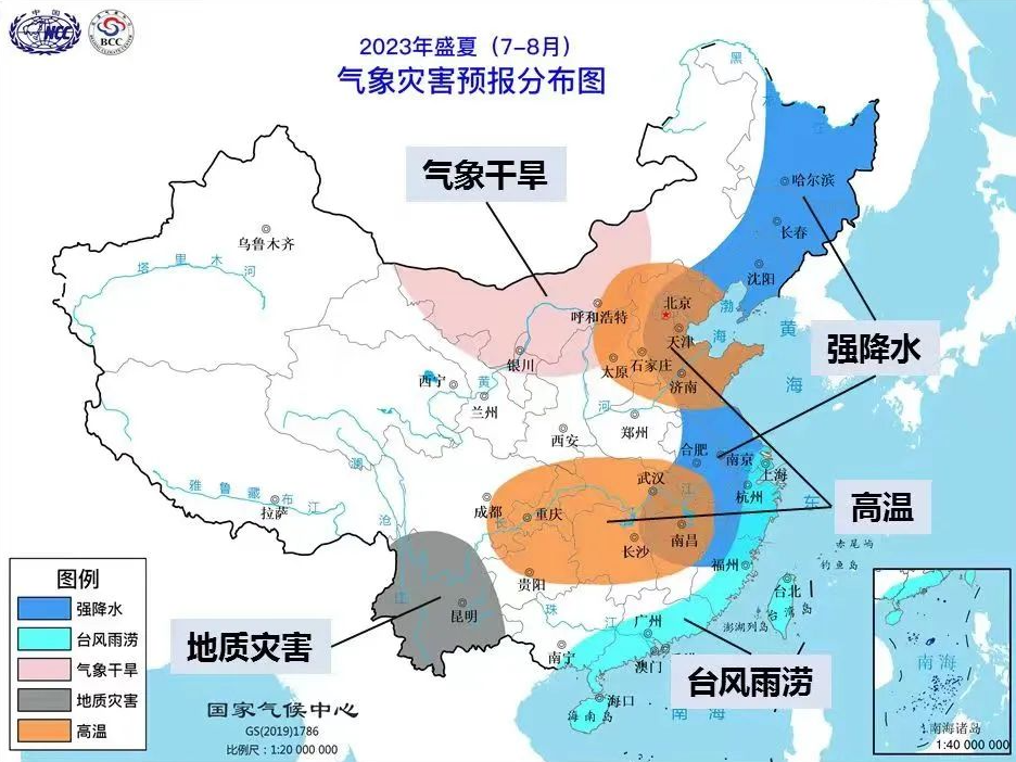 近日,中国气象局国家气候中心组织有关专家在京召开盛夏(7-8月)全国气候趋势及主要气象灾害预测会商会,预计盛夏我国气候状况为一般到偏差,极端天气气候事件偏多,阶段性强降水、暴雨洪涝、高温热浪等灾害较重。主要预测结论如下:松花江流域、辽河流域、淮河流域东部、长江流域下游、太湖流域、珠江流域可能出现较重汛情预计今年盛夏,东北、华北东部、华东中部和北部、华中中部、华南、西南南部、西藏东南部等地降水偏多1