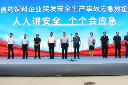 6月26日,为深入学习《全省农业领域2023年“安全生产月”活动方案》,落实“人人讲安全,个个会应急”的安全生产月主题,由河北省农业农村厅主办,石家庄农业农村局协办,威远药业承办的2023年全省兽药饲料企业突发安全生产事故应急救援演练活动在利民股份子公司威远药业隆重举行。河北省农业农村厅二级巡视员冯雪领致辞河北省农业农村厅二级巡视员冯雪领、河北省农业农村厅办公室副主任王萌、河北省兽药饲料工作总站站