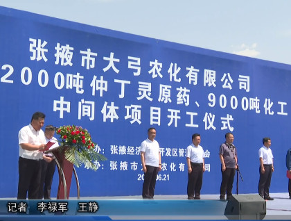 6月21日上午,张掖市大弓农化有限公司年产2000吨仲丁灵原药、9000吨化工中间体项目开工仪式在张掖经济技术开发区循环经济示范园化工产业集中区举行。张掖市大弓农化有限公司成立于2004年1月,公司属于中外合资股份制民营企业。经过多年的发展壮大,公司总资产已达2.5亿元,年销售额达5亿元,是张掖市区科技先导型企业、区属规模以上骨干企业。目前公司下辖大弓农化本部生产基地( 东北郊工业园区 ) 及祁连