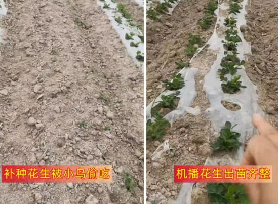 一说起喜鹊,在过去人们把它当作吉祥鸟,各种吉祥的装饰甚至家具上也刻上喜鹊的图案,更有“喜鹊喳喳叫,好事要来到”的农谚。但是现在,许多农户一提到喜鹊却是苦不堪言,因为才种下的花生,就被这些爱偷吃的喜鹊“洗劫一空”,不得不再次进行补种。 驻马店市确山县新安镇的一位大哥就遇到这样哭笑不得的事。种花生时由于机器故障,有一条垄的花生没能下籽,只得后期徒手补种。2022年5月9日,当澳佳工作人员再次