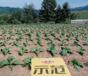 辽宁省丹东市的烤烟5月初开始移栽定植,因为雨水充沛,所有没有浇缓苗水的习惯,但是会在定植当天配合二胺水一起,十多天后的第一次水肥,继续使用二胺水。但二胺如果使用不当,就会出现烧苗现象。2022年鼎天济农技术团队在云南烤烟区进行济农乐土的实验示范, 发现在移栽时、第一次水肥时使用济农乐土1kg/亩地的效果非常好。所以2023年5月16日丹东市四门子镇的李大哥进行烤烟移栽时,鼎天济农市场服务经理推荐将