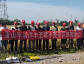 6月8日,新洋丰河北销售分公司联合代理商河北省唐山市丰润区佳禾农资公司在丰润区饶家头村饶汉义的地里召开了“洋丰至尊”小麦示范观摩暨小麦种植技术交流会。丰润区科学技术协会党组书记王建新、主席张玉晶,丰润区农业农村局农业技术推广站站长、高级农艺师陈亚东,丰润区供销合作社党组书记兼主任贾贺杰、副主任徐海臣,佳禾农资董事长孙维新等出席会议,周边近100位小麦种植户参加会议。部分观摩人员在示范田边合影一场小