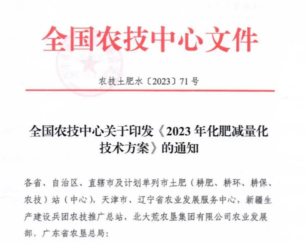 全 国 农 技 中 心关于印发 《2023年化肥减量化技术方案》的通知农技土肥水〔2023〕71号各省、自治区、直辖市及计划单列市土肥(耕肥、耕环、耕保、农技)站(中心),天津市、辽宁省农业发展服务中心,新疆生产建设兵团农技推广总站,北大荒农垦集团有限公司农业发展部,广东省农垦总局:为贯彻落实《到2025年化肥减量化行动方案》要求,进一步做好化肥减量增效工作,集成示范“三新”技术模式,推动科学施肥