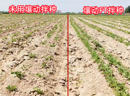 夏播即将开始,对于马上要播种的种子来说,需要经过哪些处理呢?拌种,就是第一关。为什么要拌种?拌种有哪些好处?不拌种可不可以?带着这些问题,用实例给您答案。2023年5月12日河南濮阳南乐县早春花生拌种回访效果。所有的处理条件都相同,唯独使用的进口拌种剂同时,一份加入了壤动FT,另一份没有加。在出苗率上,壤动拌种的花生出苗率达到97%以上,未用壤动出苗率只在75%左右;壤动拌种花生,无论大籽还是小籽
