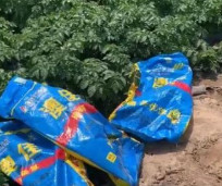 2023年5月12日,河南通许县的云经理正在返回的路上,道路两旁整片的土豆田长势正旺,绿油油的叶片随风摇摆,景色甚是好看。恰遇有种植户正在田间追肥,这无疑引起了经营十几年农资的云经理强烈的好奇心,随即停下车前去查看,不看不知道,一看原来是老熟人!只见,大嫂正在忙着整理追肥管,此时正是土豆膨大时期,追施的正是澳佳15-8-26硝硫基果优佳肥料。这块土豆田,每亩施用澳佳18-18-18腐植酸螯合肥一袋
