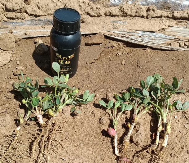 近日,澳佳生态工作人员来到花生之都正阳县,回访春花生生长情况。通过近一两天田间回访查看,不禁让众人惊叹,小花生竟然有如此大威力,不信,您看下图。 同样是一块地里面的花生,只不过是在播种时进行了壤动拌种处理,现在花生的生长情况却截然不同。站在地头,乍眼望去,看起来长得差不多,分别拔出几株后,对比展示,壤动拌种花生地下根系部分居然比地上部分还长,差不多能有两倍,健壮无比。 2021