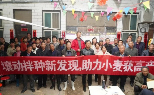 2023年5月4日,上午九点,澳佳生态农化服务团队联合农资导报记者和延津禾为贵农资一起来到河南延津野厂村为近百名包地大户讲解小麦后期管理及一喷三防注意事项。延津禾为贵丰娟总经理(左)与经销商李同霞(右)介绍壤动产品农户现场分享使用壤动拌种小麦长势区别现场直播壤动拌种小麦和未拌种小麦差异同时针对延津花生区土传病害频发及增产乏力等问题,澳佳农化老师结合多年作物施肥管理经验,推出了澳佳“壤动FT+壤动N