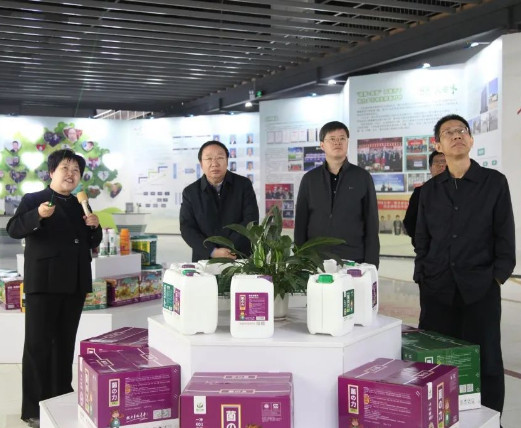 在根力多董事长王淑平的陪同讲解下,郭玉明实地查看了根力多农民科技展馆并与企业王淑平进行亲切交谈,深入了解公司的发展历程、产品研发、人才引进、科技成果转化等方面取得的成效。参观过程中,王淑平详细汇报了企业发展历程、科研力量和产品技术优势。她表示,根力多自成立以来,紧紧围绕国家重大战略,对接社会发展需求,坚持基础理论研究和应用技术研究相结合,聚焦农业发展关键技术问题,主动设计一批重大项目,