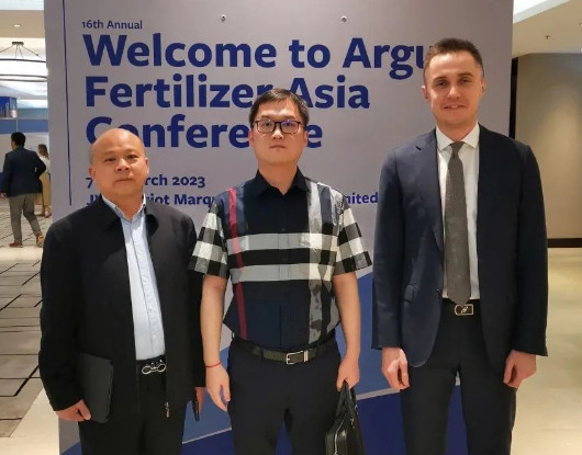 近日,第16届阿格斯亚洲肥料会议在迪拜如期举行,会议由英国知名资讯机构阿格斯公司主办。作为后疫情时代的首次亚洲国际肥料盛会,此次会议吸引了来自亚洲、非洲、欧洲、南美洲等40多个国家和地区的150多家公司代表参加,新洋丰执行总裁杨磊率队参加了会议,与来自世界各地的知名贸易商、进口商和供应商深度交流,共同就肥料技术发展、产业化合作等话题进行了协商。新洋丰执行总裁杨磊(中)、副总裁赵程云(左)与客户在会
