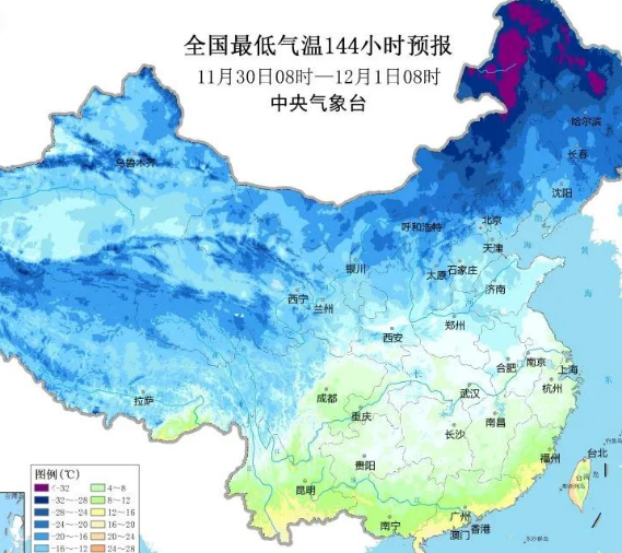 11月中旬以来,一直没有强冷空气影响我国,气象数据监测显示,过去10天,全国大部地区气温较常年同期偏高2~4℃,部分地区偏高4~6℃。预计11月26-30日,寒潮天气将横扫我国,大部地区气温暴跌,寒潮影响后大部地区气温将转为较常年明显偏低,天气寒冷。此次寒潮不仅影响范围广、降温剧烈、风力大,还将伴有雨雪天气,公众需提前关注天气变化。预计11月26-27日,寒潮天气将率先影响新疆、甘肃西部和内蒙古西