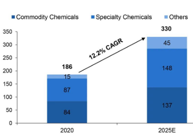 自从2015年中国收紧环境法规以及随后对全球化学品供应链的影响以来,印度在过去 7-8 年中一直处于化学品/农用化学品领域的前沿。凭借强大的化学工业和在合理的劳动力成本、环境合规性、安全标准和全球认证方面有利的商业动态,印度化学工业吸引了跨国公司的关注。由于新冠疫情和物流瓶颈导致的最新供应链问题进一步巩固了印度在全球跨国公司心目中的地位。有利的商业动态一直在帮助印度化工行业增长,印度化学工业在 2