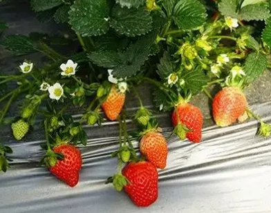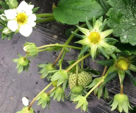 一、控水控肥操作草莓要起花,绝大多数通过控水效果较好,适量控水有利于花芽分化。控水要看地表,沙土渗水快,浇水频率要高于黏土。有磷肥营养充足,有利于作物的花芽分化和开花结实,提高结果率。钾肥施用适量,能让作物茎秆健壮,防止倒伏,促进开花结实,增强抗旱、抗寒、抗病虫能力。硼能让草莓花粉萌芽快,并且能促进受精和种子的形成。花芽分化期合理施肥,叶面肥以高磷高钾加海藻肥或氨基酸等为主,根部可以淋施含腐殖酸的