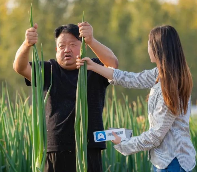 “山东大葱到底有多高?”“你真没我家葱高!”最近一段时间,关于山东大葱的话题频频登上热搜。在近日举办的2022中国·章丘大葱文化旅游节上,一棵高达2.44米的大葱夺得“葱王”称号,再度霸占了各平台的热搜榜。章丘大葱以“高大脆白甜”的特点久负盛名,品牌价值已达52.91亿元。11月2日,记者来到了位于济南市章丘区的章丘大葱主产区,探访葱地里的“新高度”。80后“新农人”线上线下齐发力销售额预计破千万