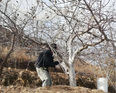 已经进入11月份,苹果树的果实基本都已采收完毕,果树开始落叶,此时应抓紧时间在早霜来临之前进行秋耕保墒、清洁果园、树干防护等。一、病虫害防治1、虫害防治苹果采收后,潜叶蛾、螨类、卷叶蛾等开始在枝干、粗皮裂缝中以蛹、卵或幼虫等存在形式越冬。所以,在果实采收后,要剪除病虫枝,刮除树干粗皮,捆绑草把诱集越冬害虫收集后集中烧毁,以减少来年害虫基数。苹果绵蚜、桃小食心虫、金龟子等入秋后会潜入根系周围的土壤中