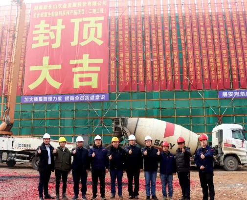 2023年1月11日,湖南新长山农业发展股份有限公司“光合细菌生物制剂系列产品项目(二期工程)”顺利封顶。 据悉,2022年,新长山与汉寿县政府签订招商引资合同,在汉寿高新区投资新建光合细菌生物制剂系列产品项目(二期工程),占地面积20余亩,规划建设1号厂房建筑面积4,098.85平方米、2号厂房建筑面积4,098.85平方米;1号仓库建筑面积9
