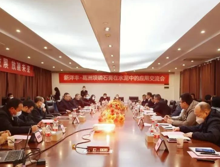 交流会现场1月9日下午,新洋丰和葛洲坝水泥“磷石膏在水泥中的应用交流会”在新洋丰大酒店举行。中国葛洲坝集团水泥有限公司生产总经理王江、生产部副总经理陈天、荆门物流配送中心总经理郑莉及葛洲坝水泥9个生产基地代表参加会议,新洋丰副总裁李维峰、副总工程师王良杰、湖北新洋丰新型建材科技有限公司副总经理詹成晋及相关业务代表参加会议,广东蚂蚁梦科技有限公司董事长林勋煌应邀参加会议。詹成晋主持交流会交流会由詹成