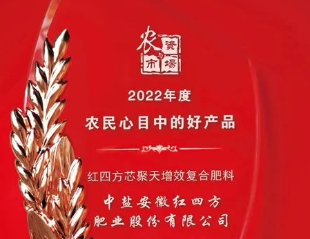 2022年12月23―24日,由《农资与市场》主办的D25中国农化行业年度领袖峰会在南昌召开,“D25年度峰会农民心目中的好产品”颁奖典礼同期举行。中盐安徽红四方肥业股份有限公司“芯聚天”增效复合肥料荣获2022年度“农民心中的好产品”奖。红四方肥业积极研发推广绿色智能肥料产品,创新农肥科技,探索智慧农业模式,凭借优良传统、先进技术、优质产品、优异服务、卓越管理、优秀文化和团队,在行业内获得了较高