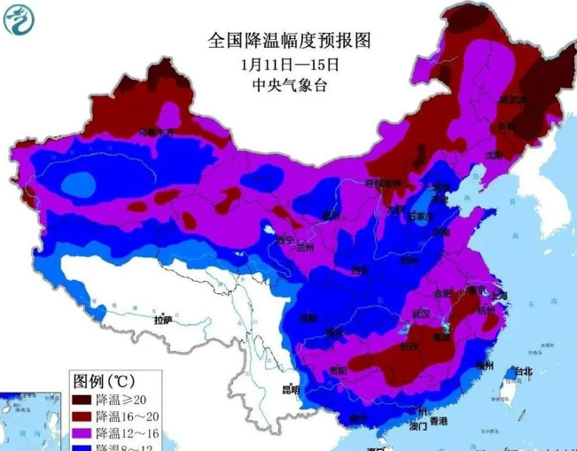 近期,我国大部延续偏暖格局,尤其是东北以及长江中下游一带偏暖异常明显。不过,今年首场寒潮天气来袭,预计1月11日开始将自西向东、自北向南影响我国大部地区。这场寒潮天气过程降温有多猛?最强雨雪核心将出现在哪些地方?是否会出现持续性低温雨雪冰冻天气?对春运交通等会产生怎样的影响?首场寒潮天气降温有多猛?中央气象台预计,11日至15日,受强冷空气影响,我国大部地区将出现寒潮天气,降温过后,我国整体偏暖的