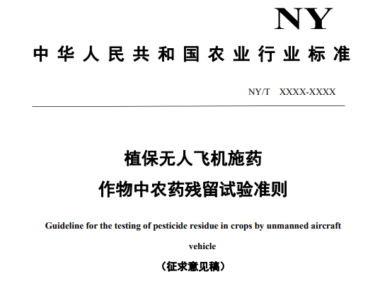 各有关单位: 根据农业农村部2022年度农业行业标准制定和修订项目安排,我所承担了《植保无人飞机施药作物中农药残留试验准则》标准制定工作,现已形成征求意见稿。 为提高标准的适用性和有效性,现面向有关管理部门、企业、协会及社会各界专家广泛征求意见,相关标准电子版请从中国农药信息网(www.chinapesticide.org.cn)下载。附件:1.植保