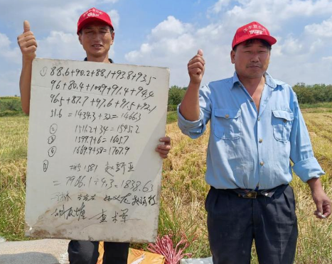 “今年高温干旱,我们这边水稻普遍都在1500斤左右,我的水稻能够达到1800多斤,我非常满意。我一亩地用‘锌磷美’(25-10-16)水稻肥80斤,还不撒尿素,放眼周边就我这块田不脱肥、不早衰、叶青籽黄的,穗子还大,收割出来的稻谷没有青头、秕谷还少。今年不仅少了一道人工施肥,还一亩地多收300斤稻谷,这‘锌磷美’就是好!就是中!就是俏巴!以后水稻用肥我只认‘锌磷美’!”刘孝强在观摩会上现场点赞“锌