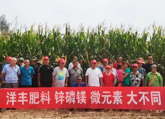 9月14日,新洋丰河北销售分公司联合衡水市冀州区周村三农服务站经销商孙华伟,在周村镇魏村常广财的地里召开洋丰“锌磷美”春玉米示范观摩会,该村几十位农户全部到场观摩。部分观摩人员在示范田边合影示范田玉米根系发达(霸王根多)、白根多;玉米穗大小一致,长度基本都在17~18cm之间,且籽粒饱满结穗位置相同,是密植品种中的佼佼者;收获时棒三叶仍可提供光合产物,为增产提供保障。示范田玉米长势比当地其他农户种