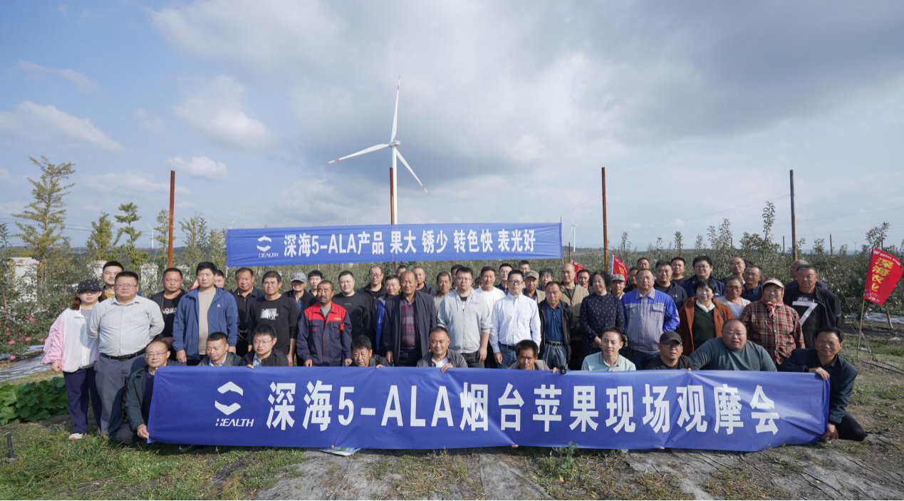 “这果子长得又大又漂亮!”“第二年的果树就能长成这个样子还是第一次见。”“这样的果子能卖上价,每斤50块也能卖出去!”“回去在我的果园里也试试。”……苹果丰收季,在烟台的某个苹果园中,传来了当地种植户不绝于耳的赞叹声,让人不禁好奇——究竟是什么产品,能得到大家的一致认可?逆境长优果,与深海5-ALA密不可分10月14日,在烟台实林农业科技有限公司的果园中,由山东深海农业生物科技有限公司举办的苹果种