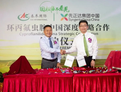 树阴满地日当午。7月25日,泰禾国际创新研究院(上海)彩旗飘扬、鲜花簇拥、礼乐声声,铺展的红毯将喜庆气氛烘托得异常热烈。下午,泰禾国际与先正达植保《环丙氟虫胺中国深度战略合作协议》签约仪式在此隆重举行。泰禾股份总裁谢思勉,先正达集团中国副总裁丁松代表双方签署战略合作协议。签约仪式由晓明检测倪珏萍总经理主持。