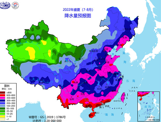 近日,国家气候中心组织会商2022年盛夏(7月至8月)全国气候及主要气象灾害趋势,在综合分析前期天气气候特征以及未来大气、海洋、陆面等影响因子演变的基础上,参考国内外动力气候模式预测信息,对今年盛夏气候趋势做出预测。预计今年盛夏,我国气候状况总体偏差,极端天气气候事件偏多,旱涝灾害较重。一、盛夏旱涝灾害较重,全国呈南、北两条多雨带预计今年盛夏,广东南部、广西南部、云南南部、海南降水量超过600毫米