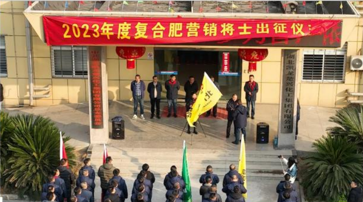 玉兔昂首赢开门,1月31日(农历正月初十),湖北凯龙楚兴化工集团有限公司(以下简称“湖北凯龙楚兴”)营销将士出征仪式在办公大楼前隆重举行。随着副总经理王礼云宣令——向2023年出发!锣鼓喧天、龙狮舞动、鞭炮齐鸣,声震大地,掌声雷动欢送出征,湖北凯龙楚兴复合肥全体营销人员驱车奔赴全国市场,开启2023市场营销新征程。营销将士出征仪式现场湖北凯龙楚兴总经理杨国富致辞并作动员讲话。他要求,梦想在前,使命