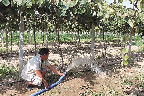 许多种植猕猴桃的朋友偏重于浇水、修剪、病虫防治,在猕猴桃园灌水上,只知叶萎蔫就浇水,长期下去,看上去表土干黄,根系所分布的土壤处于潮湿,引起大量烂根,猕猴桃要科学浇水,就会减少一大部根腐病发生。猕猴桃水分管理流程:判断猕猴桃需水多少的方法,当猕猴桃田间土壤持水量在50%以下时,在20厘米范围均是这种情况时,就需要灌水。感观指标,种在壤土上的猕猴桃用手控土壤,一控成团,一松就散开;在粘重土壤上种猕猴